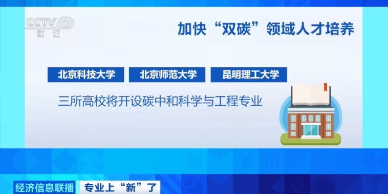 从今年9月开始,北京科技大学、北京师范大学、昆明理工大学三所高校将开设碳中和科学与工程专业,致力于培养多学科交叉背景的复合型创新人才。
